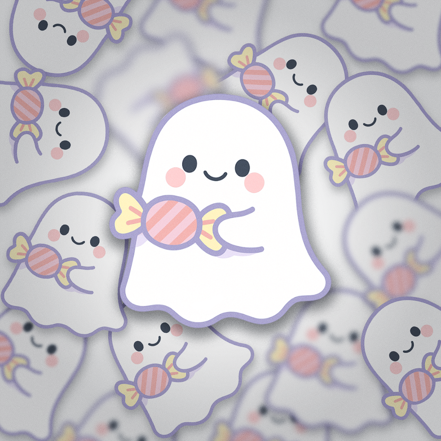 Ghost with Candy | Cute Halloween Sticker | Glossy Vinyl
