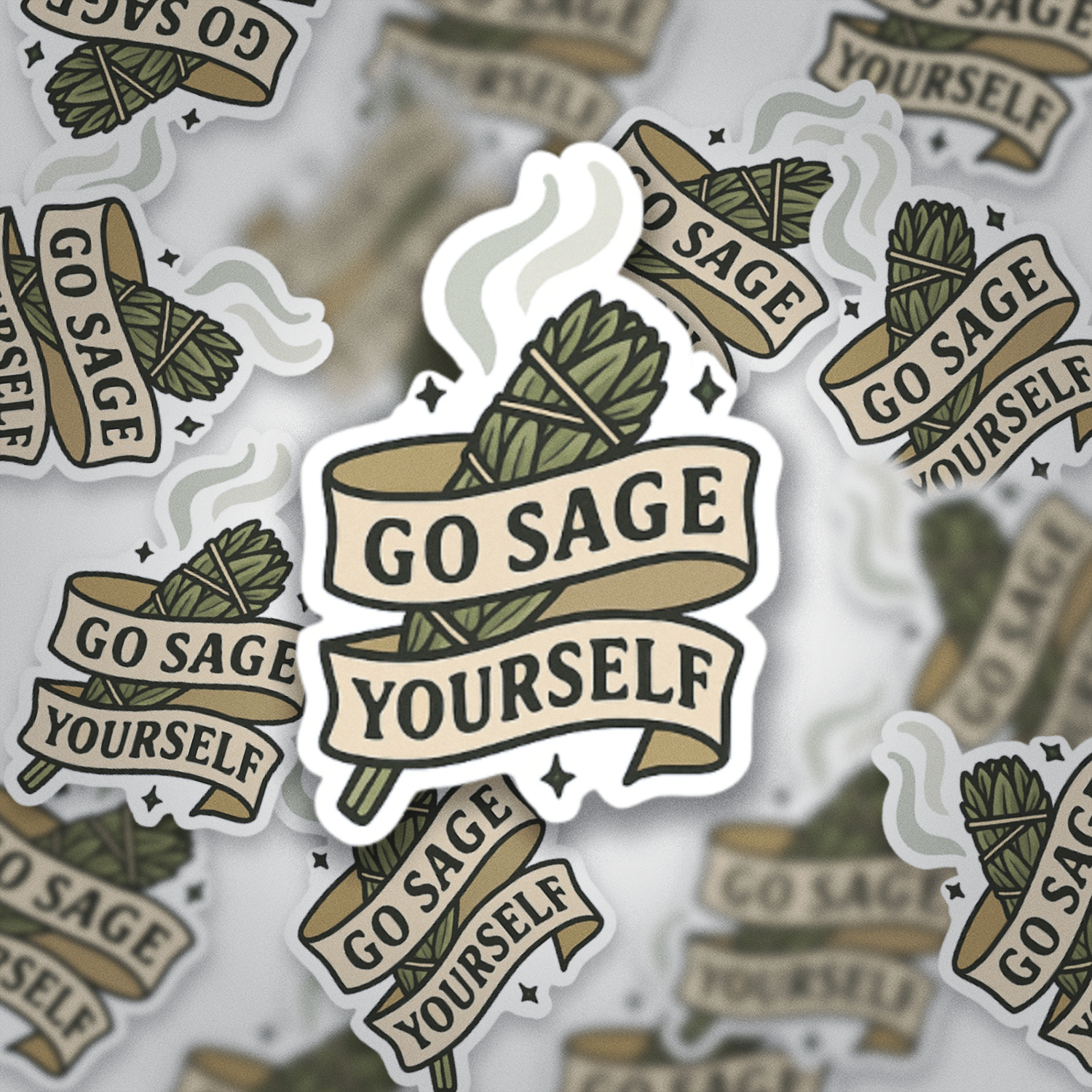 Go Sage Yourself Sticker | Witchy Vinyl Waterproof Sticker | Funny Spiritual Gift for Energy Cleansing & Protection