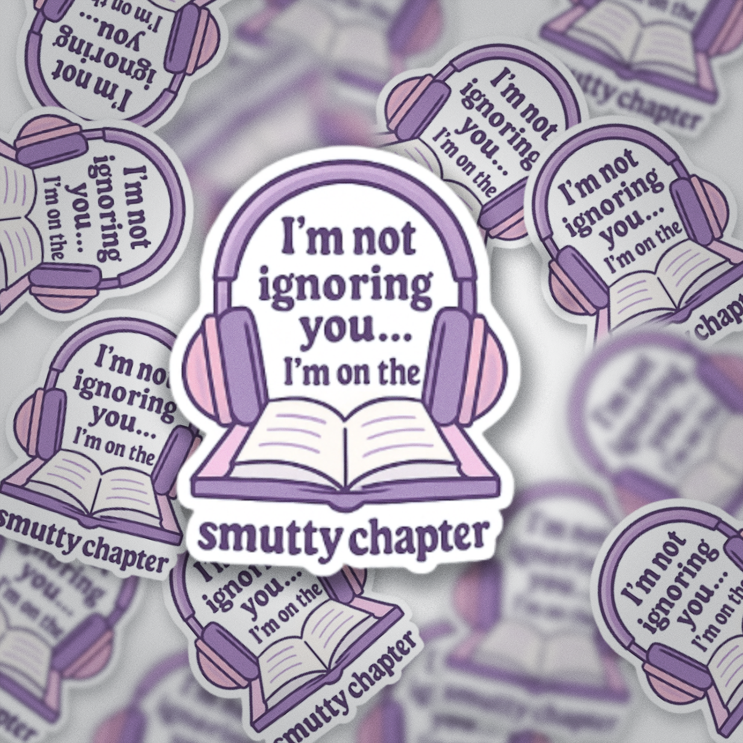 This Iβm Not Ignoring You, Iβm on the Smutty Chapter sticker is the perfect mix of cozy, cheeky, and bookish energy. With its soft pastel tones and romance audiobook vibes, itβs made for every reader who gets just a little too invested in the steamy parts.