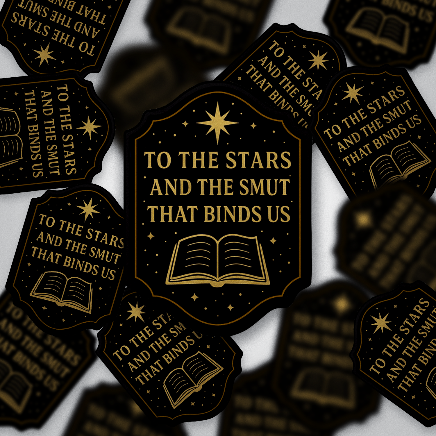 This To the Stars and the Smut That Binds Us sticker was made for celestial romantasy lovers — inspired by our favorite fae, found families, and scenes that leave you blushing. The gold celestial accents on black give it a sleek, magical finish that fits any dark bookish aesthetic.